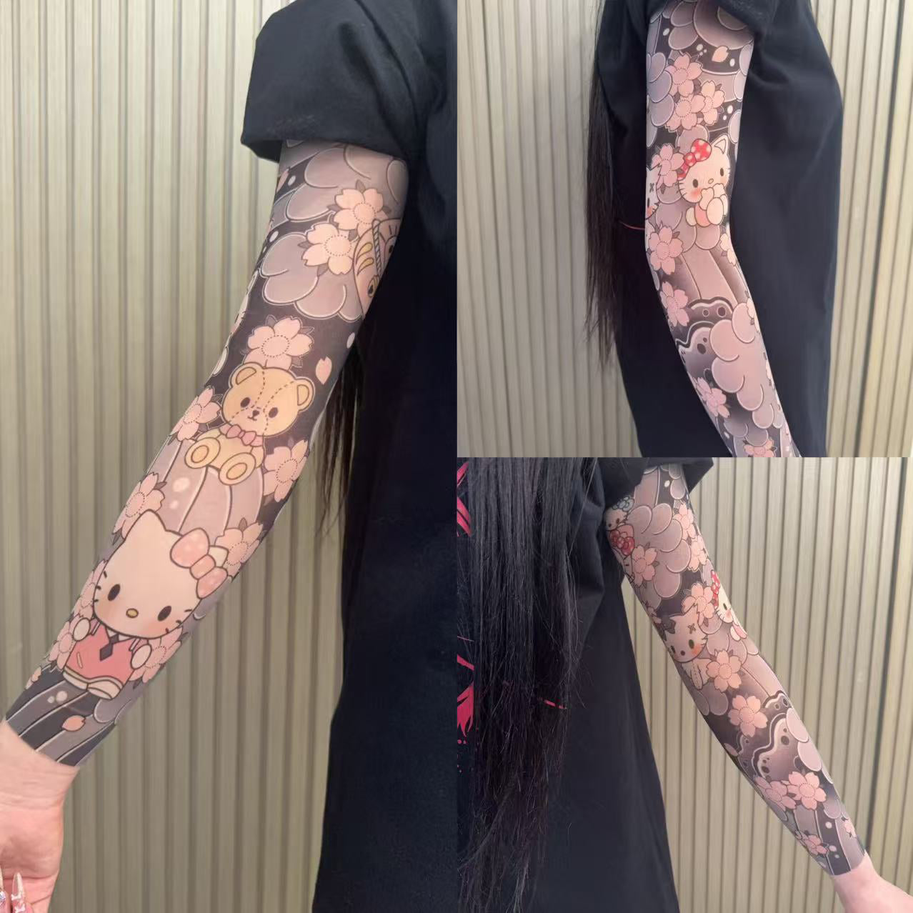 The sleeves are made using seamless technology with high-resolution printing on thin nylon, giving them the appearance of a real tattoo. Seams are not visible, and the sleeves fit snugly, preventing bunching or slipping.